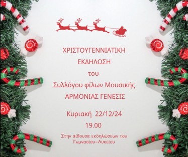 Το Σάββατο 21 Δεκεμβρίου πραγματοποιήθηκε η χριστουγεννιάτικη εκδήλωση του Συλλόγου Φίλων Μουσικής Σαμοθράκης «Αρμονίας Γένεσης», ενώ είχε προηγηθεί η συμμετοχή της χορωδίας με τα κάλαντα στο άναμα του χριστουγεννιάτικου δέντρου του Δήμου στην Καμαριώτισσα στις 19/12. Μικροί και μεγάλοι, μέσα από τα φωνητικά και μουσικά σύνολα, παρουσίασαν χριστουγεννιάτικα τραγούδια και κάλαντα ταξιδεύοντας μας σε κάθε γωνιά της Ελλάδας, μεταφέροντας το πνεύμα, την παράδοση και τα μηνύματα των Χριστουγέννων.