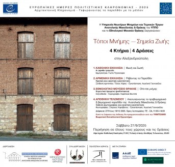 «ΤΟΠΟΙ ΜΝΗΜΗΣ ΣΗΜΕΙΑ ΖΩΗΣ» Ευρωπαϊκές Ημέρες Πολιτιστικής Κληρονομιάς